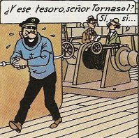 En cuanto al relato en sí creo que es de los más brillantes, por no decir el que más, de toda la serie de aventuras de Tintín. Comienza con toda la secuencia de preparativos para la expedición -que incluyen la aparatosa irrupción del profesor Silvestre Tornasol en el universo de Tintín-, y continúa con un viaje apasionante por mares tropicales, repleto de aventuras, éxitos, fracasos, esperanzas y decepciones con un protagonismo casi absoluto de un capitán Haddock en permanente lucha consigo mismo y con su corte de desquiciadores oficiales. Finalmente, y una vez de regreso a casa, todo se resolverá en el lugar más inesperado.